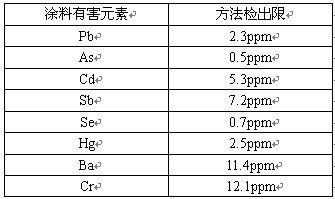 按國標中針對涂料中有害元素含量應(yīng)小于或等于下表中相應(yīng)元素的最大限量要求。