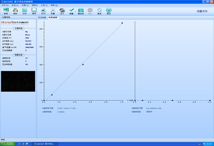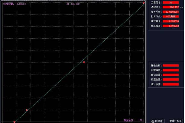 (A道線性方程:Y=875.144*X-17.003);(A道線性值:0.99916)見圖1