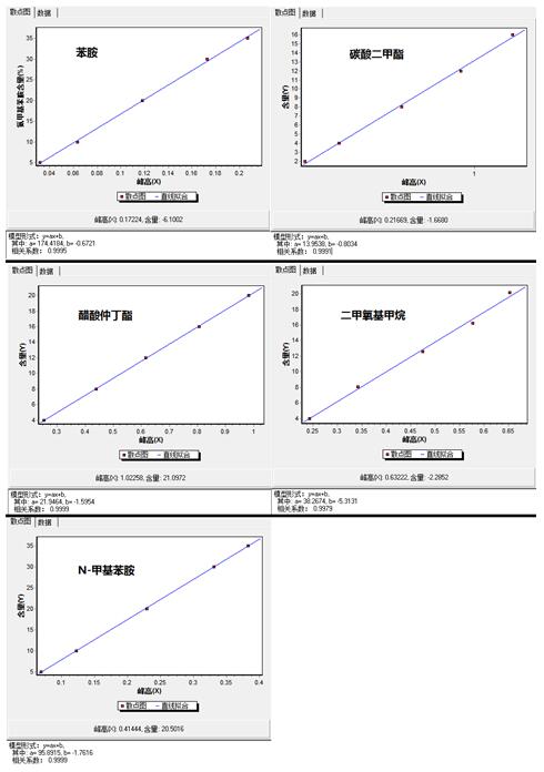 2.2.2 校準用的標準物質(zhì):苯胺、N-甲基苯胺、二甲氧基甲烷、乙酸仲丁酯、碳酸二甲酯均為分析純或分析純以上級別試劑(中國石油科學研究院提供)。