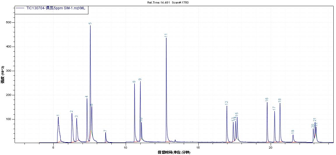 柱箱升溫程序:60℃(2min)20℃/min 130℃(1min)10℃/min 200℃(2min)5℃/min 250℃(3min)