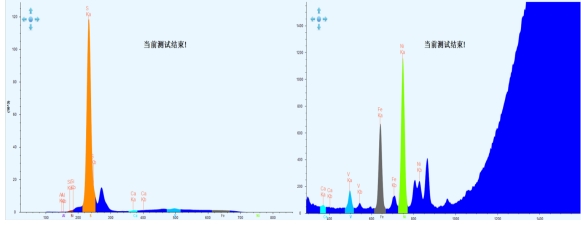 圖3為測(cè)試中使用的一個(gè)未知樣(命名石油焦1#)的測(cè)試譜圖,在譜圖中可以明顯觀察到S、V、Fe、Ni元素的特征峰,并且在此樣品中還含有微量的Al、Si、Ca、Zn元素。使用該樣品進(jìn)行重復(fù)性測(cè)試后,檢測(cè)結(jié)果中S、V、Fe、Ni元素的重復(fù)性分別達(dá)到了0.28%、3.33%、1.10%和0.71%,表明該儀器對(duì)石油焦樣品具有很好的檢測(cè)效果。
