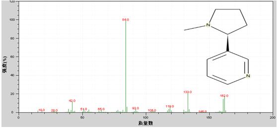 尼古?。?span>Nicotine),俗名煙堿,是一種存在于茄科植物(茄屬)中的生物堿,也是煙草的重要成分之一。尼古丁會使人上癮或產(chǎn)生依賴性,重復(fù)使用可導(dǎo)致心臟速度增加、血壓升高和食欲降低,攝入大劑量尼古丁會引起惡心甚至嘔吐,嚴(yán)重禍及死亡。氣相色譜質(zhì)譜聯(lián)用儀(GCMS),采用氣相色譜分離和電子轟擊電離源(EI)配合全掃描模式完成定性分析,GCMS-SIM模式實現(xiàn)定量分析,可應(yīng)用于煙草中尼古丁的檢測。